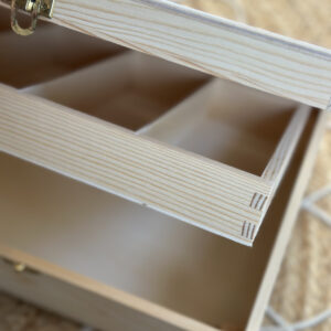 Deze XL kist heeft een losse bak die je kan optillen waardoor er onderin nog plek is voor bijvoorbeeld een borstel of haarspray.