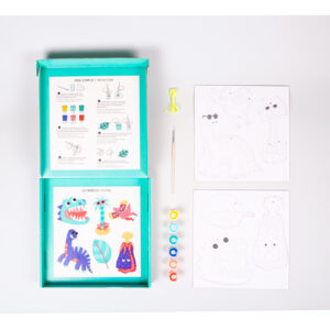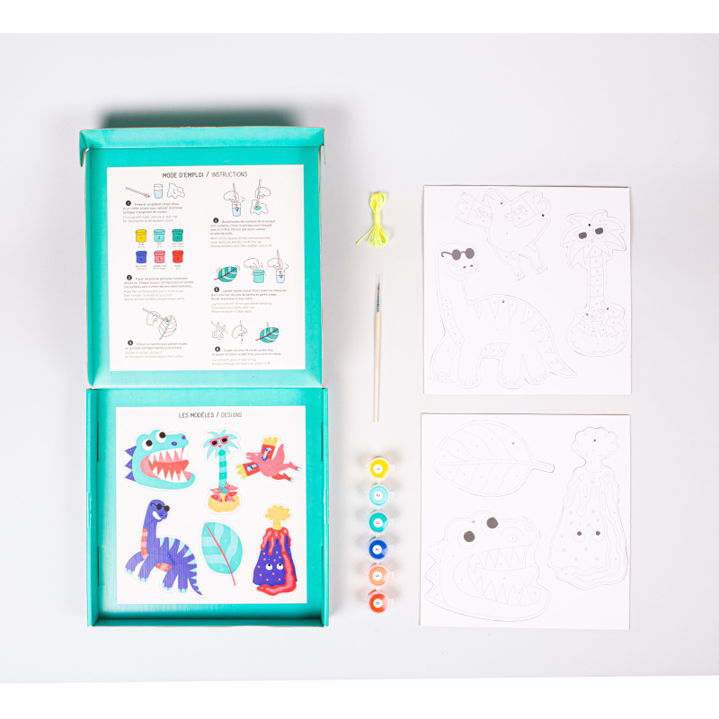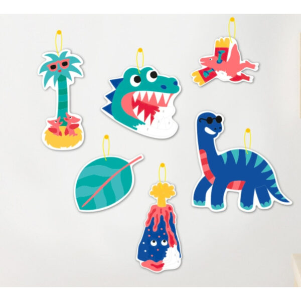 De dinosaurussen komen naar je toe, maak je favoriete decoratieve hangers met de dino’s verfbox.