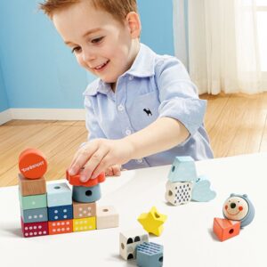 Een ster, een hart, een driehoek of een cirkel? Peuters ontdekken al spelend verschillende vormen en kleuren en leren nieuwe woorden. Het spel is ook ideaal om getallen te oefenen: elk blok heeft een cijfer op de voorkant en het respectieve aantal punten op de achterkant. Dit helpt om te leren en te oefenen met tellen tijdens het spelen. De bouwblokken in trendy unisex kleuren stimuleren peuters tot spelen en bouwen.